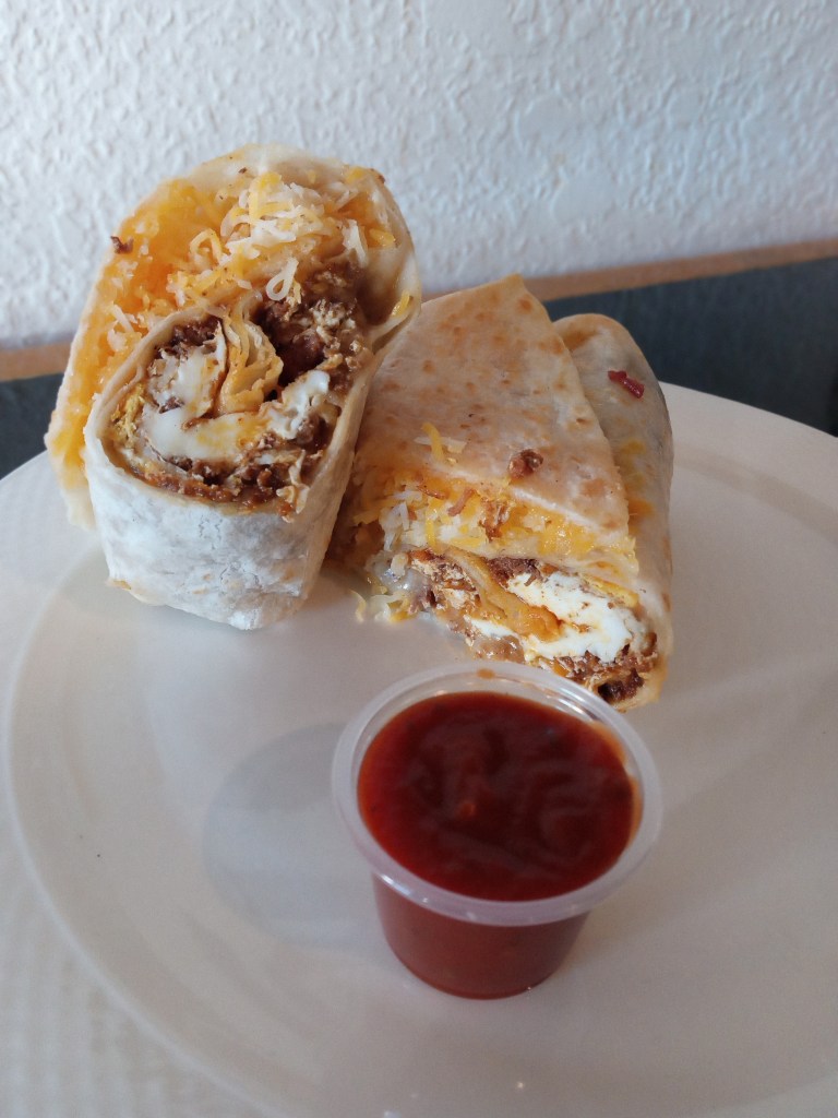 Besides coffee, the drink menu also features teas like matcha and chai, along with smoothies and bottled sodas like Mexican Coca Cola and Jarritos. There’s a lot more than just drinks on the menu, so it’s hard to pass up ordering a snack or full meal whenever I visit. While their empanadas and pastries are divine, when I am there during breakfast hours, my husband and I can’t resist splitting the breakfast burrito, made with refried beans, eggs, chorizo, and cheese.