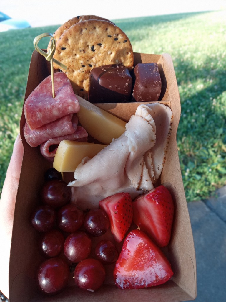 The custom charcuterie box I had was a feast for the eyes as well as the belly thanks to the way Devon artfully arranged my selections. Everything I ate was also delicious, but as a true cheese and chocolate lover, those were my favorite items – and if it had been a possibility, I could’ve just had a girl dinner with a box full of those two items. But, alas, a girl can’t live on cheese and chocolate alone! The turkey, salami, crackers and fresh fruit were also filling and refreshing.