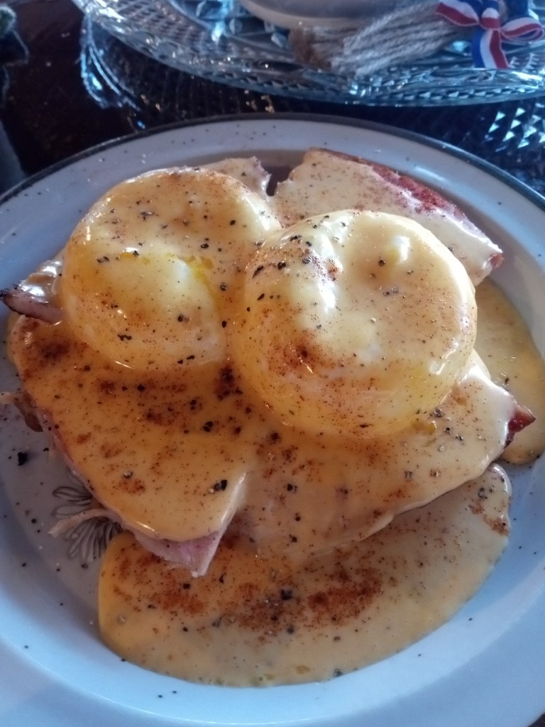 During the breakfast visit, my hubby ordered a bagel sandwich, which he let me have precisely one bite of! It was really good, and since I love eggs benedict that’s what I chose and it didn’t disappoint! We visited on Fourth of July, a Friday, so the biscuits and gravy weren’t on the menu (that’s a weekend-only offering), so I have yet another item I can’t wait to try on my next visit.