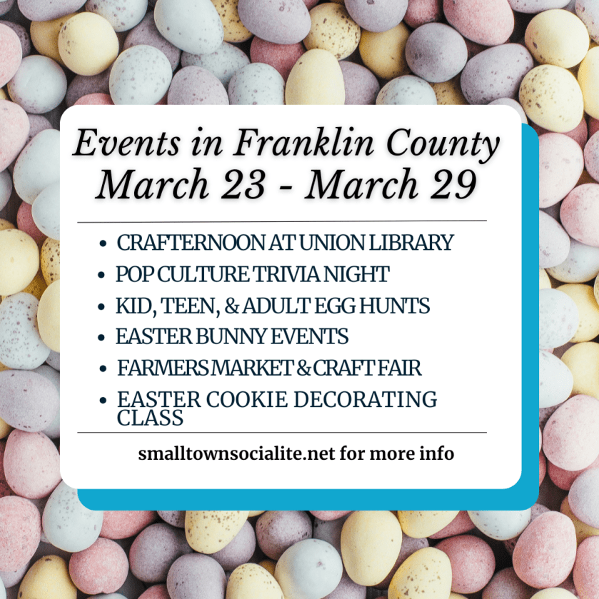 The Easter bunny is hopping into Franklin County this week! There are bunny-themed breakfasts, Easter-themed activities, games, and more happening around the area. There are also egg hunts for kids, teens, and the young at heart!