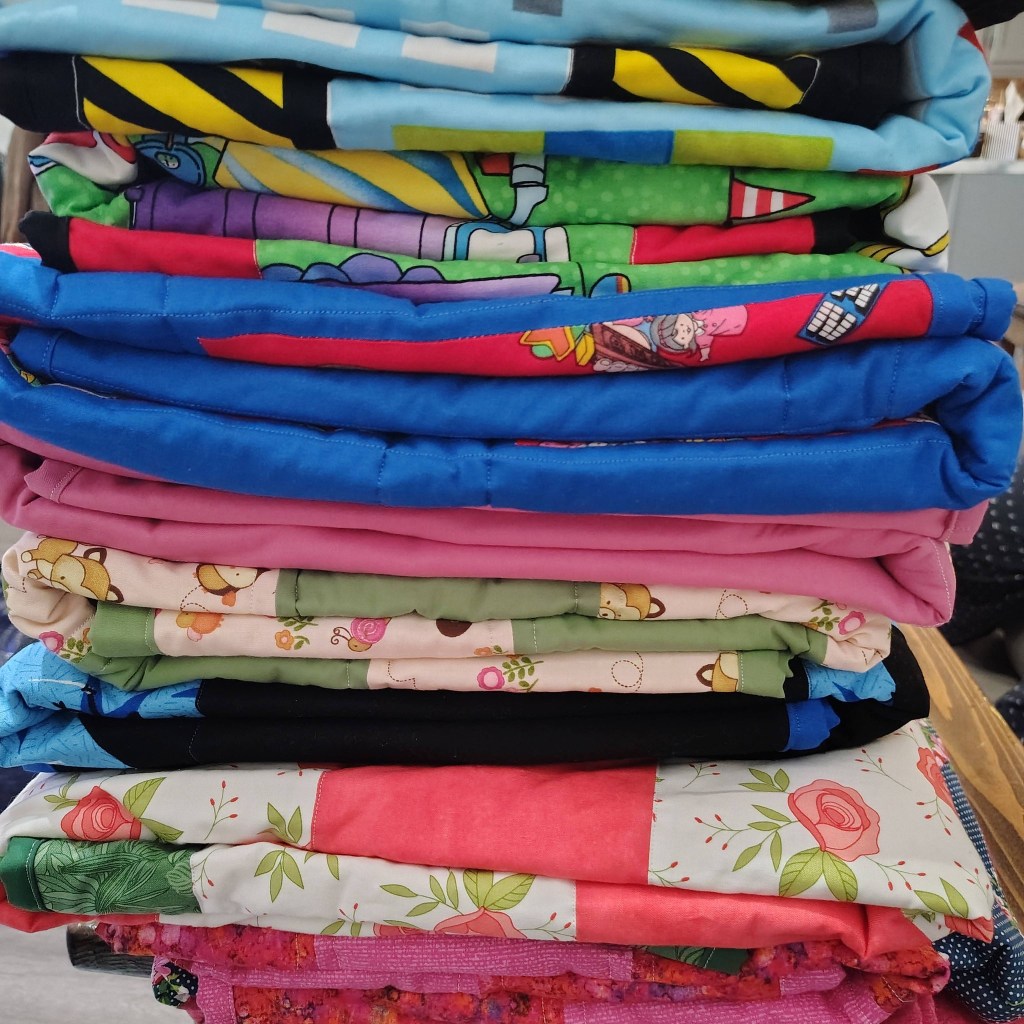 In addition to being delivered to other area nonprofits, the individually bagged blankets are also delivered to first responder locations so first responders can give the blanket to kids in times of stress or crisis, such as after a car accident, to help provide a bit of comfort.
