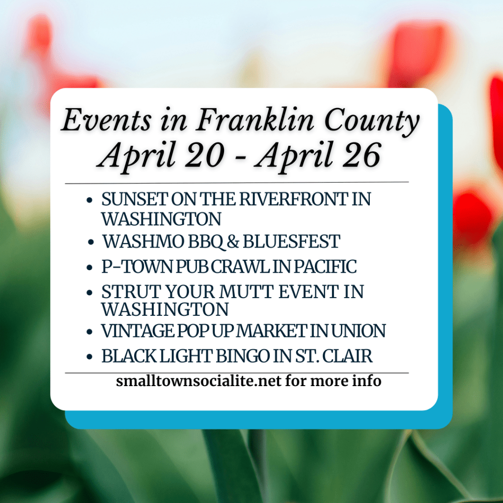 It’s a big week for events around Franklin County, there’s community wide yard sales, flea market, and a vintage pop up market, plus farmers markets in Union and Pacific. The first Sunset on the Riverfront of the season happens this Thursday in Washington, plus annual events are happening this weekend like the WashMo BBQ & Bluesfest, and the P-Town Pub Crawl in Pacific.