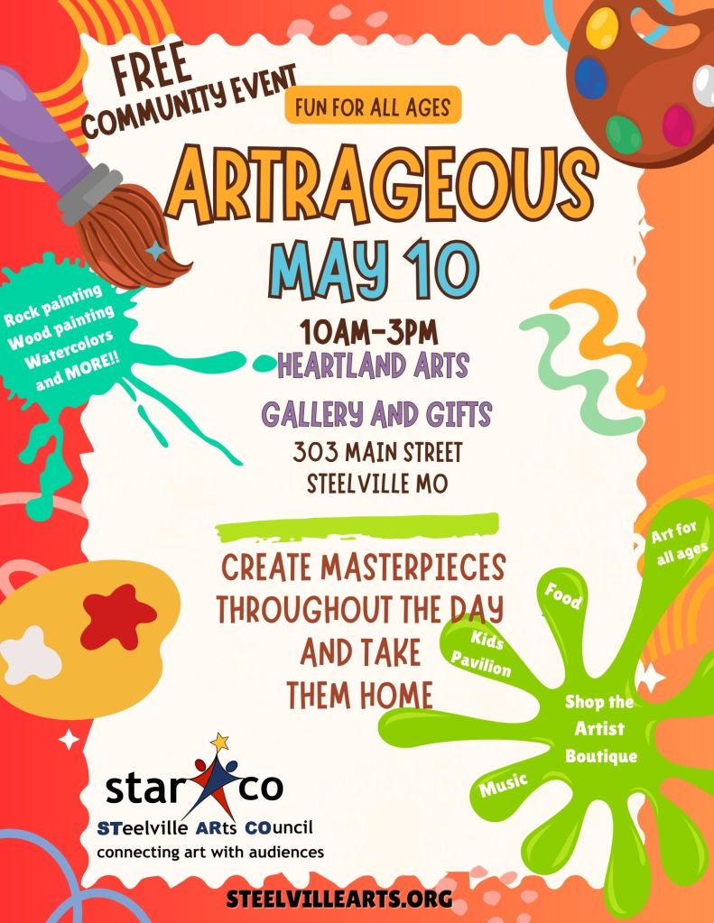 Steeleville Arts Council presents a free community event for all ages. The event will feature crafts at the kids pavilion, adult crafts, painting, will feature food vendors, and more.