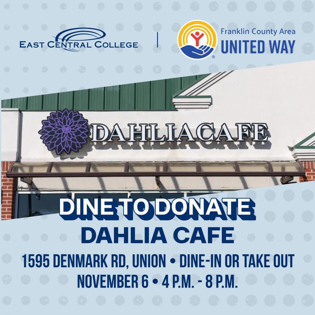Head to Dahlia Cafe in Union from 4-8 p.m. for Dine to Donate Night. Whether you dine in or take out, a portion of every purchase will benefit the United Way — helping support vital programs right here in our community.